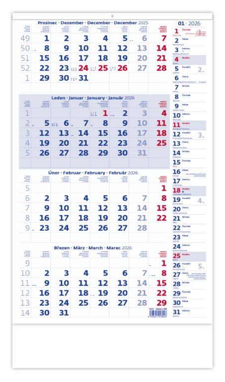 Čtyřměsíční kalendář modrý s poznámkami 2026Vyrobeno v ČR