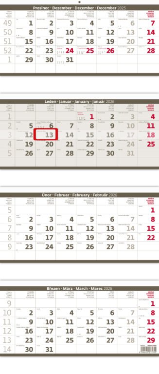 Čtyřměsíční skládaný kalendář šedý 2026Vyrobeno v ČR