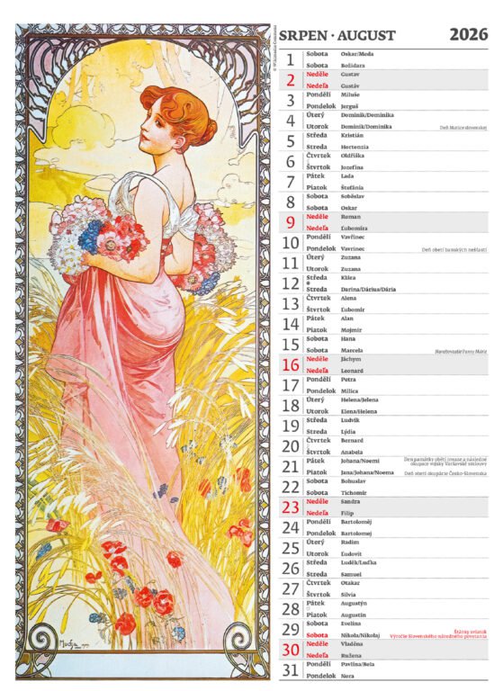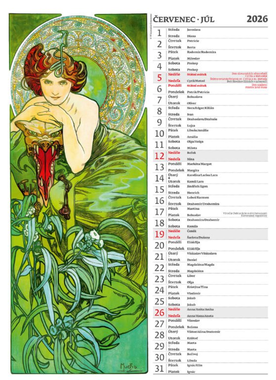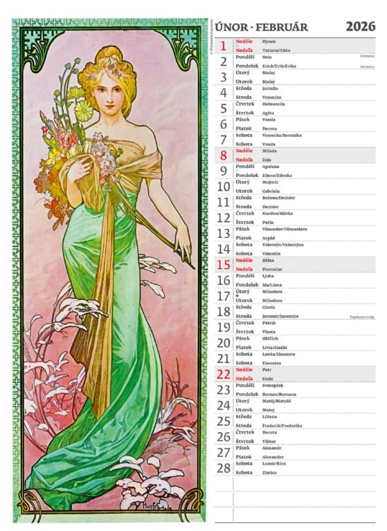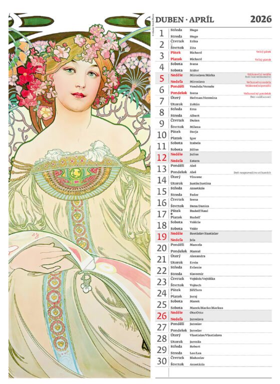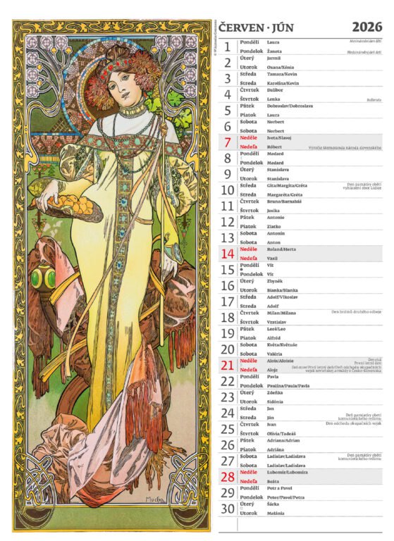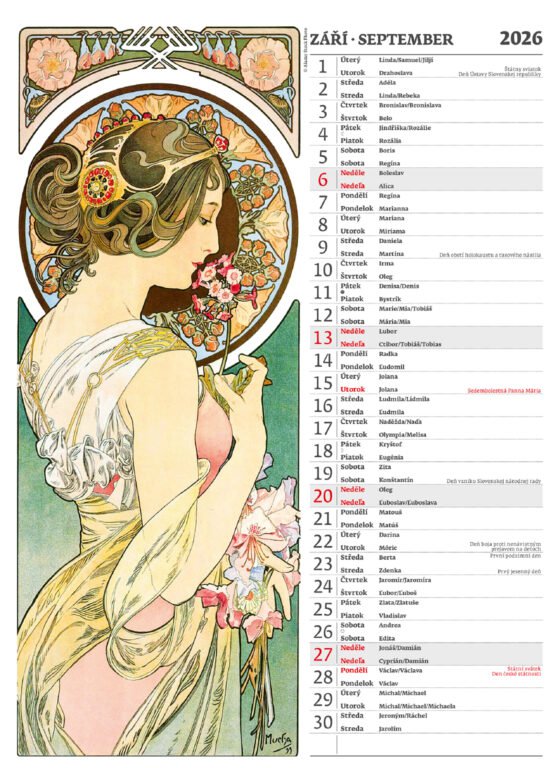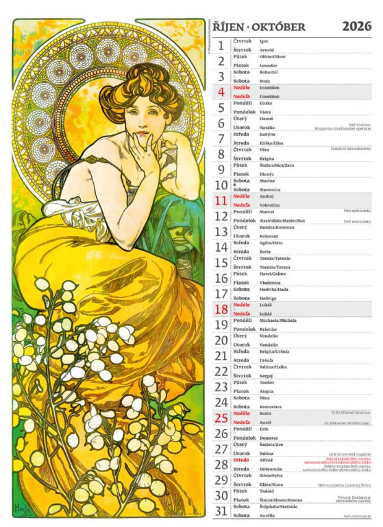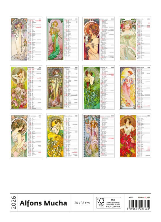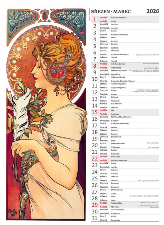Nástěnný kalendář Alfons Mucha 2026Vyrobeno v ČR