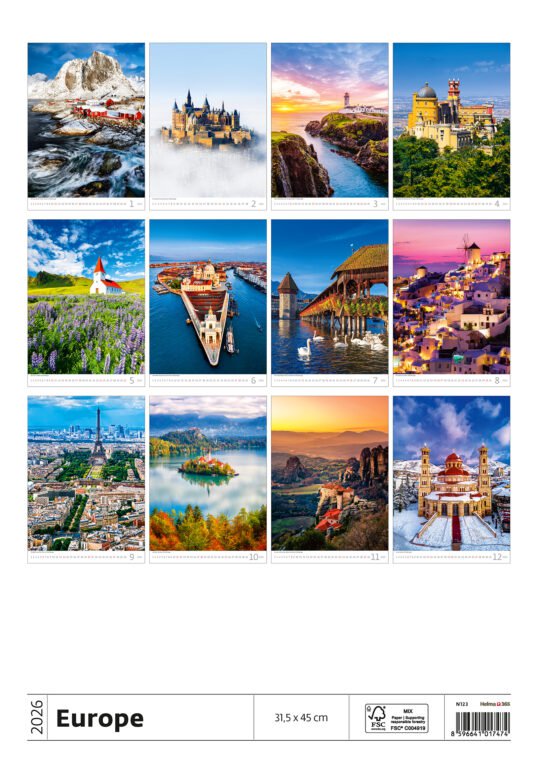 Nástěnný kalendář Europe 2026Vyrobeno v ČR