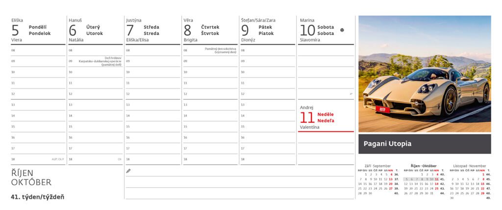 Plánovací kalendář Auta 2026Vyrobeno v ČR