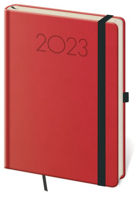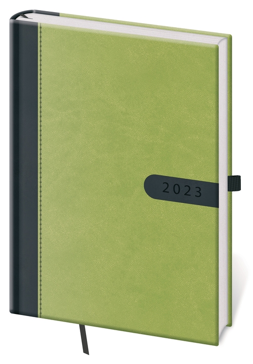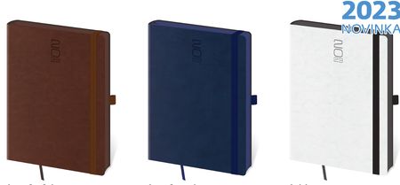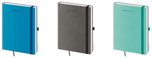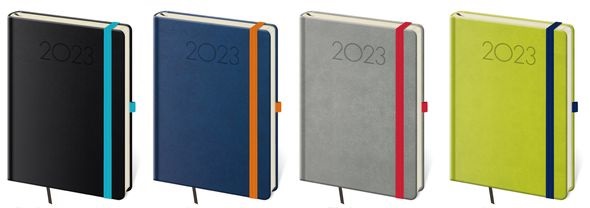 Moderní diář v měkké ohebné vazbě s kulatou příčnou gumičkou přes hřbet představuje nejnovější způsob zpracování. Diář je příjemný do ruky díky matné kožence a lehký díky měkkým deskám.