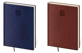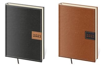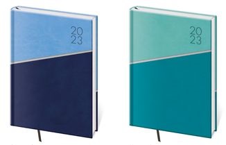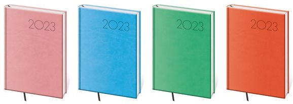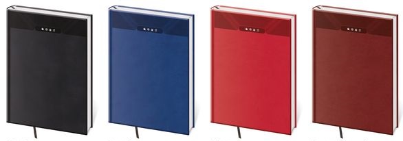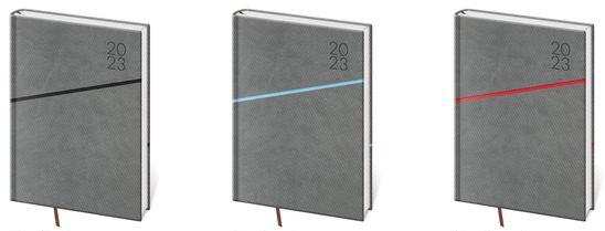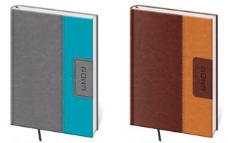 Desky diářů Bora jsou kombinací dvou barev matného materiálu Vivella, který je velmi příjemný na dotek.
